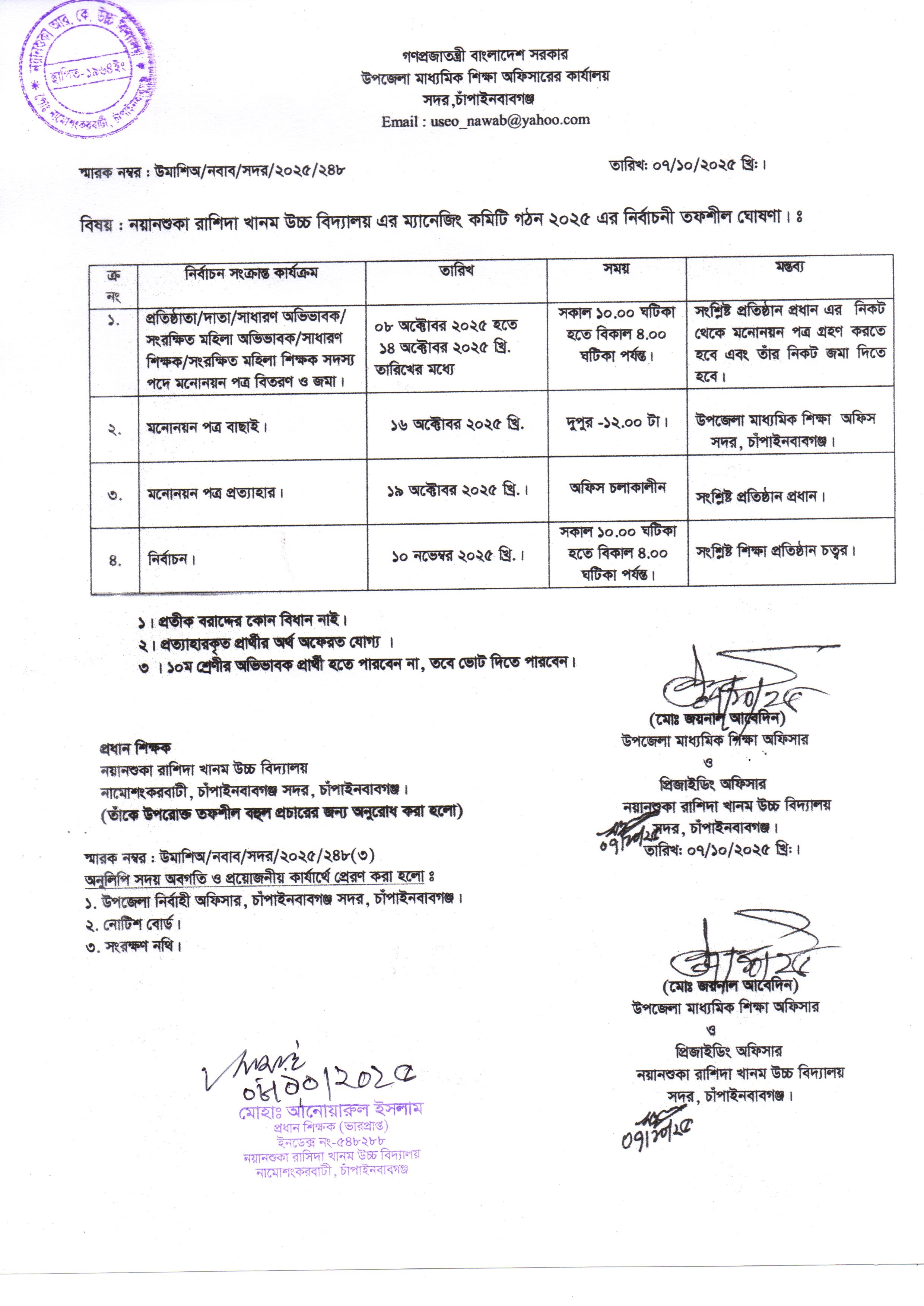 1 | অত্র বিদ্যালয়ের ম্যানেজিং কমিটি গঠন ২০২৫ এর নির্বাচনী তফশীল ঘোষণা পত্র। | 2025-10-08 | |